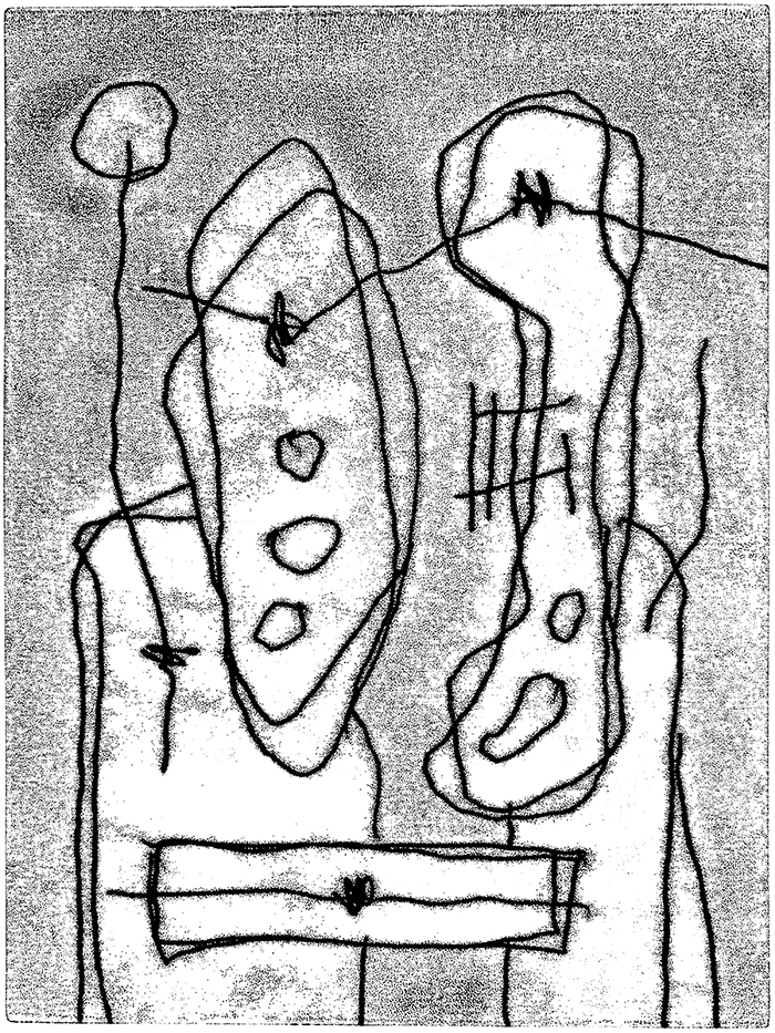 2000, Mappe, 30 x 40 cm, mit 8 Radierungen von geschnittenen Platten auf 30 x 40 Bütten